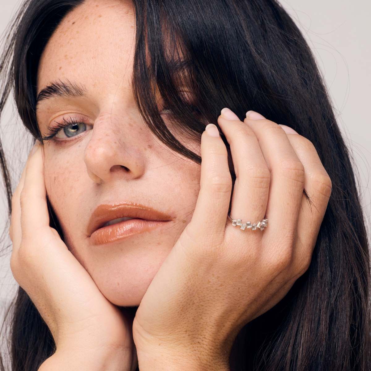Le résultat est un bijou à la fois sophistiqué et original, où l'organisation libre des diamants crée un jeu de lumière unique, offrant à la bague un caractère dynamique et contemporain.