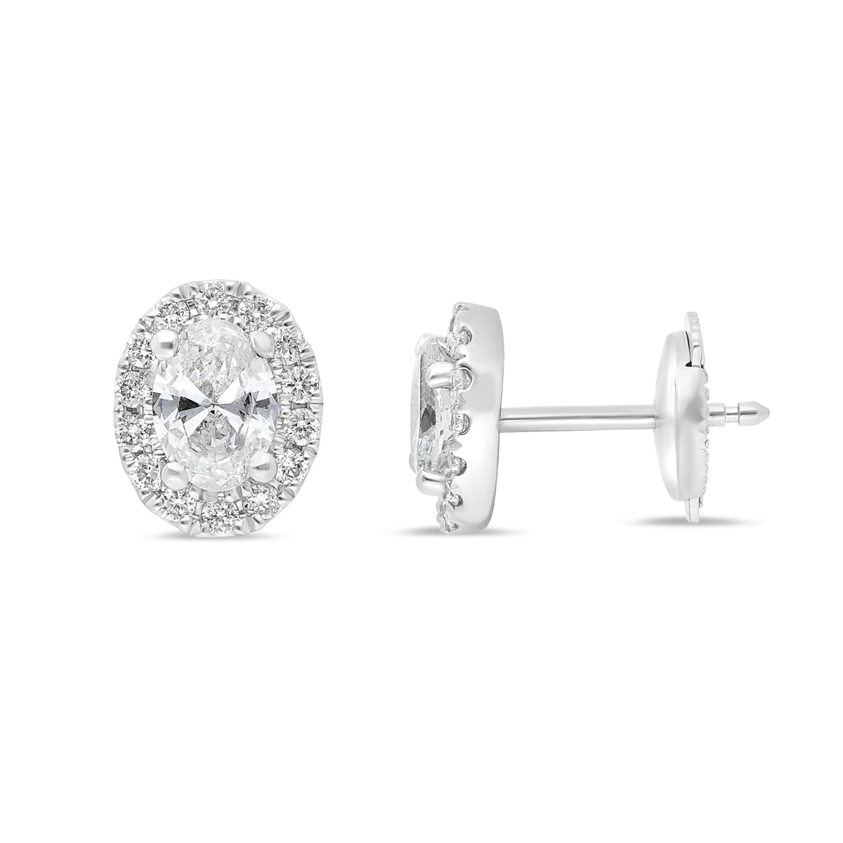 Les boucles d’oreilles La Digue en or blanc 750 millièmes séduisent par leur silhouette raffinée et leur éclat exceptionnel. Au centre, un diamant ovale capte la lumière avec intensité, immédiatement sublimé par un halo ovale de petits diamants sertis au plus près de la pierre.