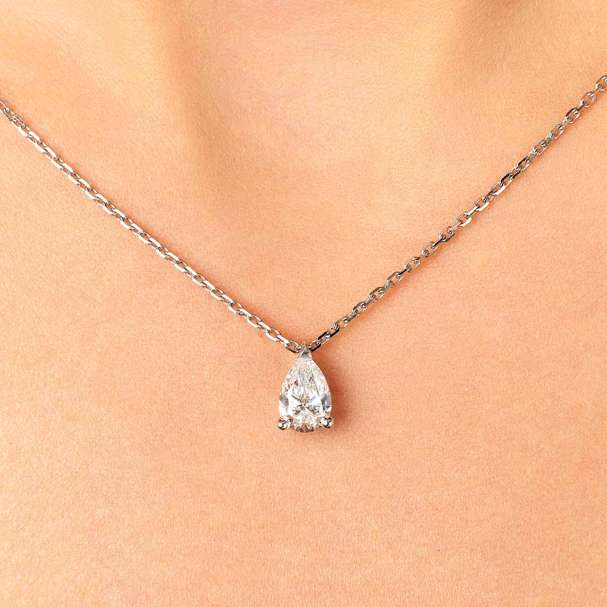 Ultra féminin, ce pendentif aux courbes tout en douceur est serti d'un diamant poire, dit aussi "goutte de diamant" ou "larme". La beauté classique du diamant en forme de poire est sublimée par une monture minimaliste à griffes.