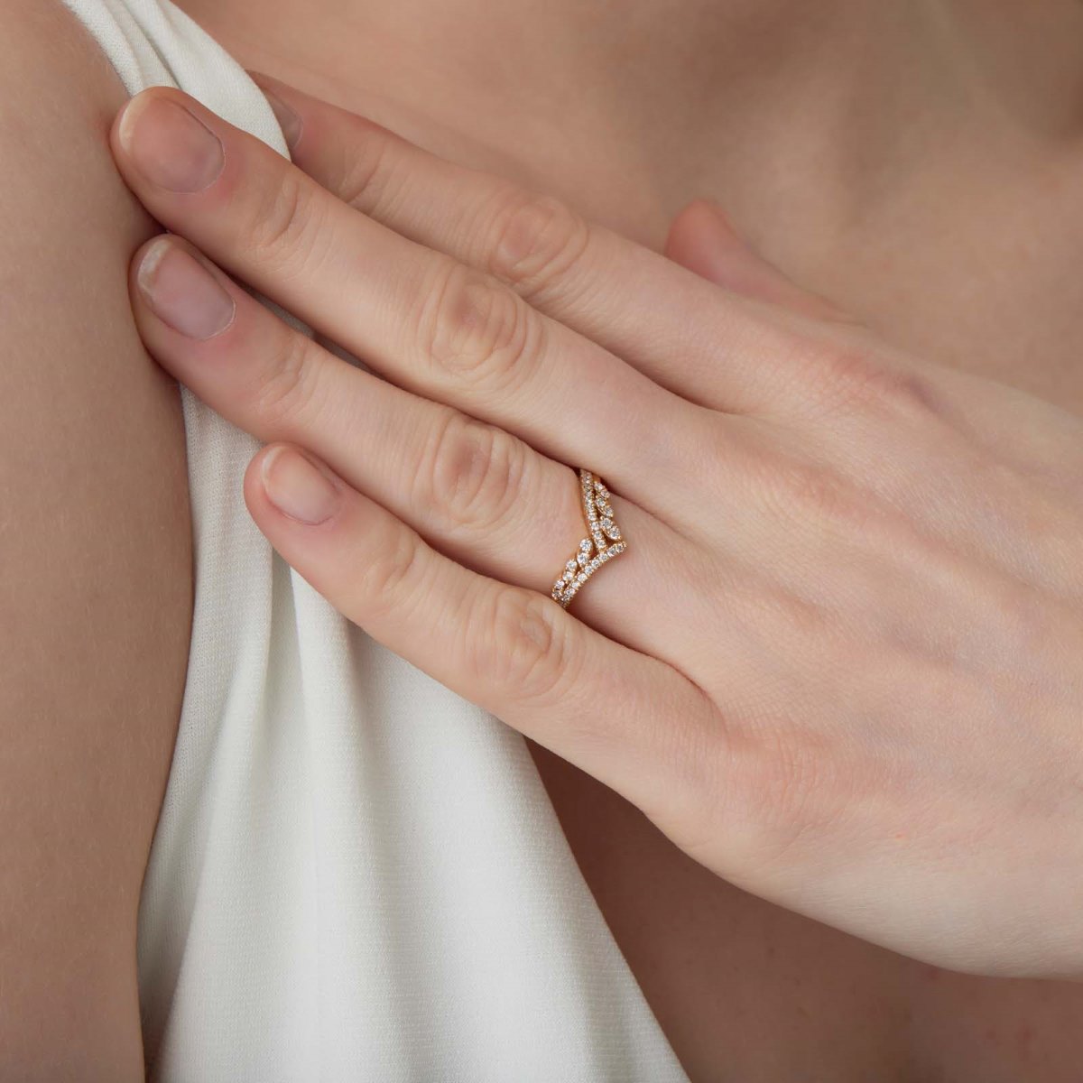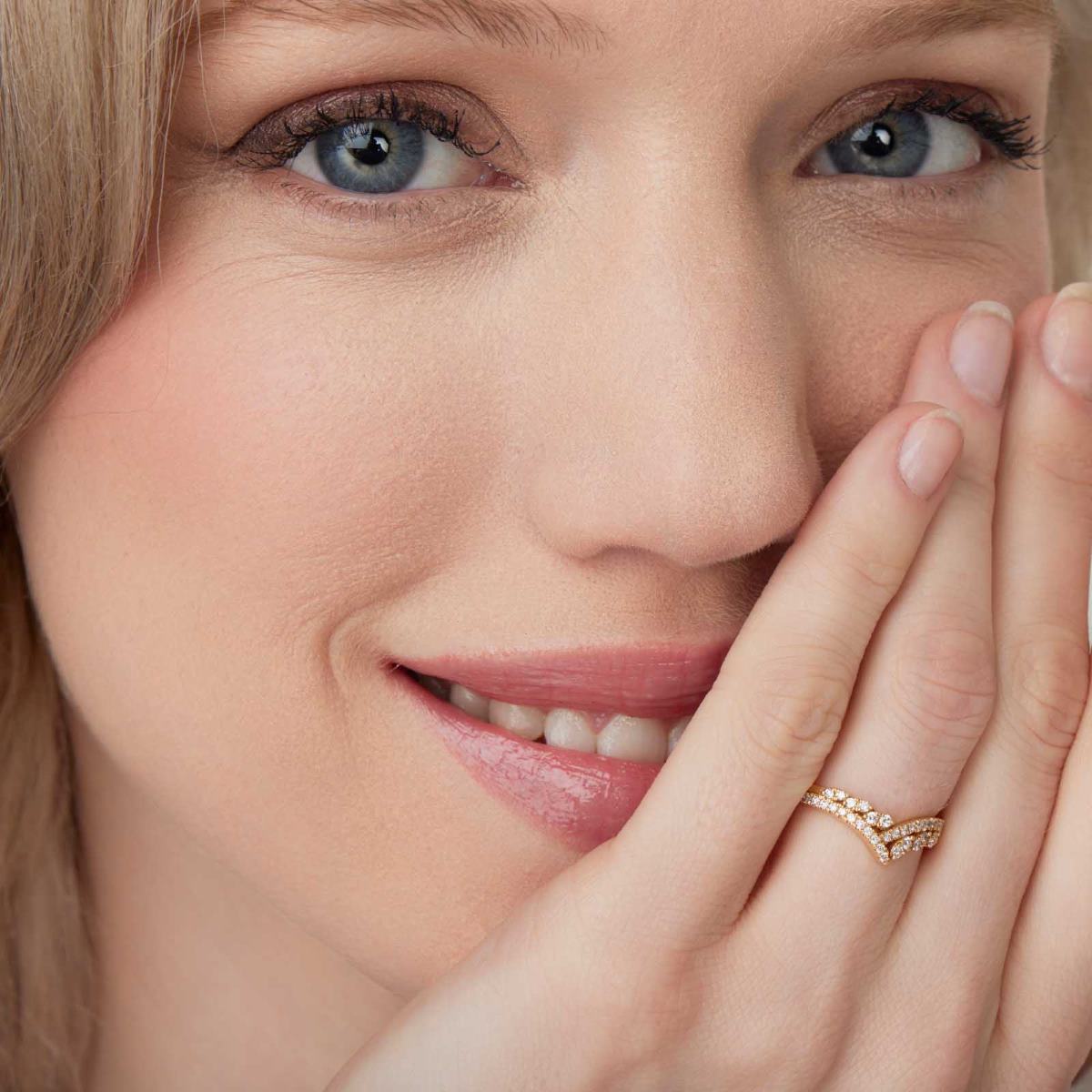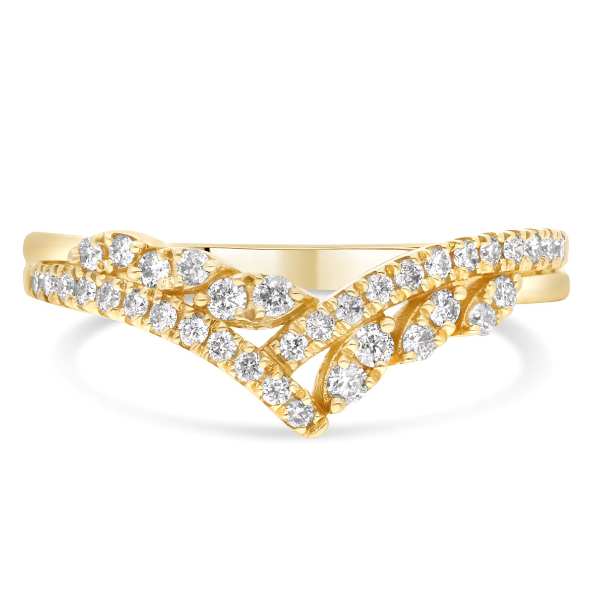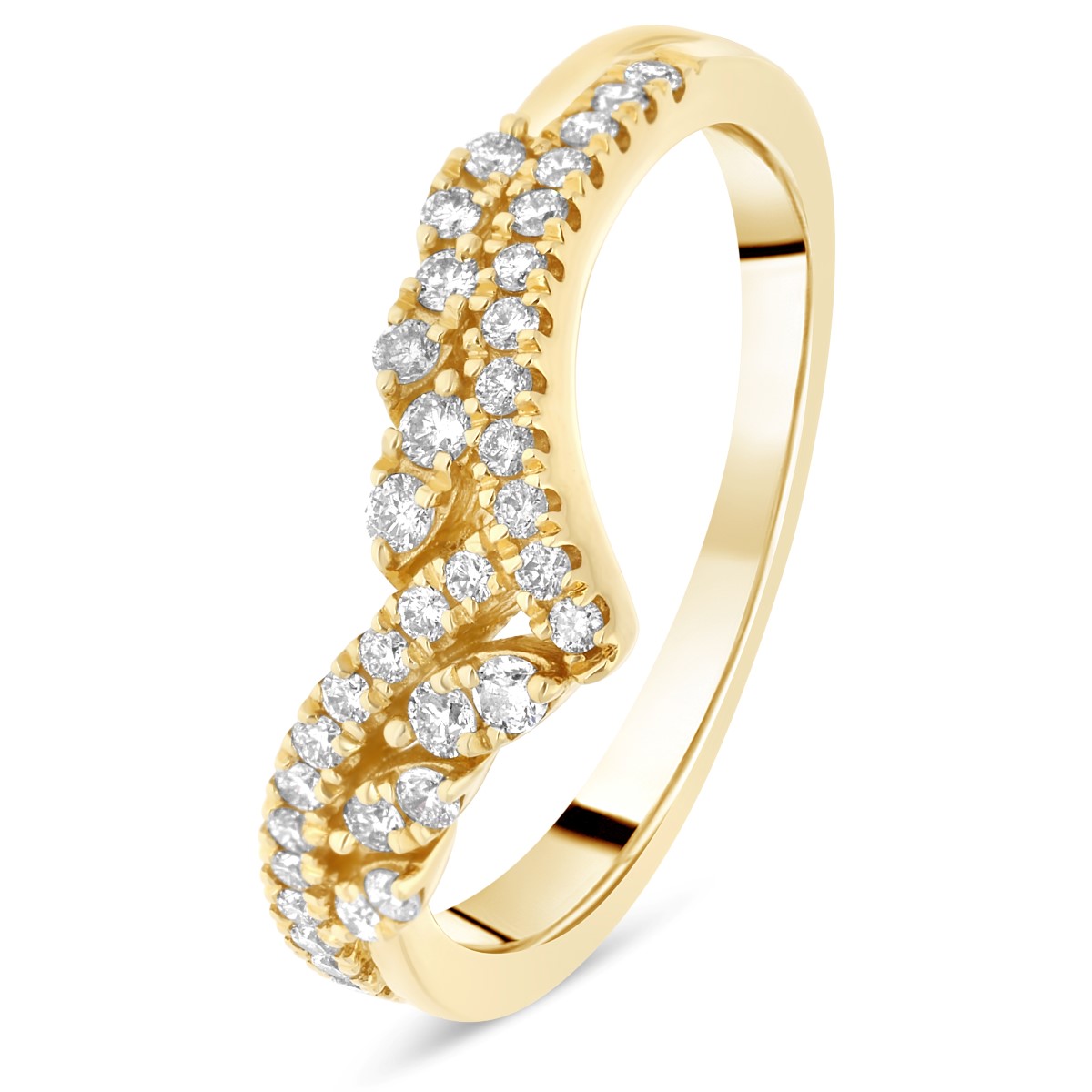 Audacieuse et raffinée, l’alliance La Magistrale séduit par sa forme en V qui épouse élégamment la ligne du doigt. Réalisée en or jaune, elle est sublimée par deux rangées de diamants ronds sertis en demi-tour, offrant une brillance remarquable tout en conservant un équilibre parfait.