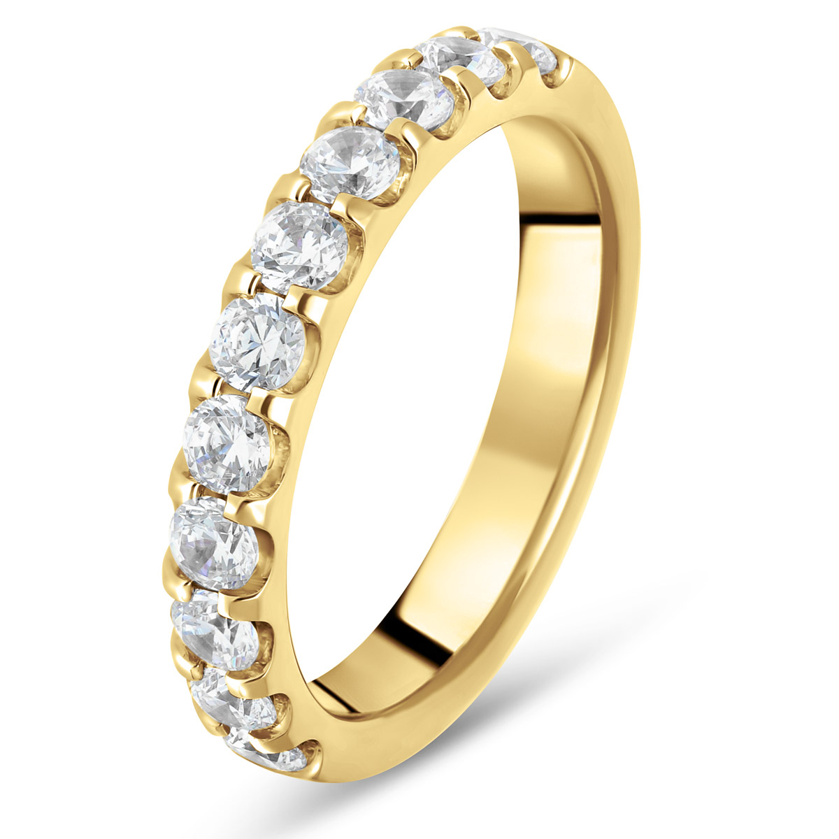 Classique, et indémodable, cette alliance "demi tour serti griffes" c'est l'un des nos bestsellers parmi les alliances diamants. Voici sa version en or jaune 18 carats sertie de diamants taille brillant de qualité HSI ou GVS. Vous pouvez choisir le poids carat de diamants pour trouver votre alliance parfaite. L'intérieur est massif (non-ajouré) pour permettre la gravure et arrondi pour plus de confort.